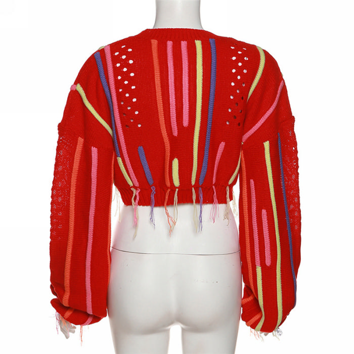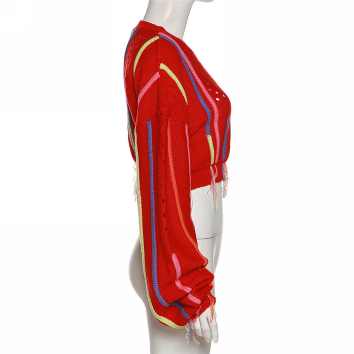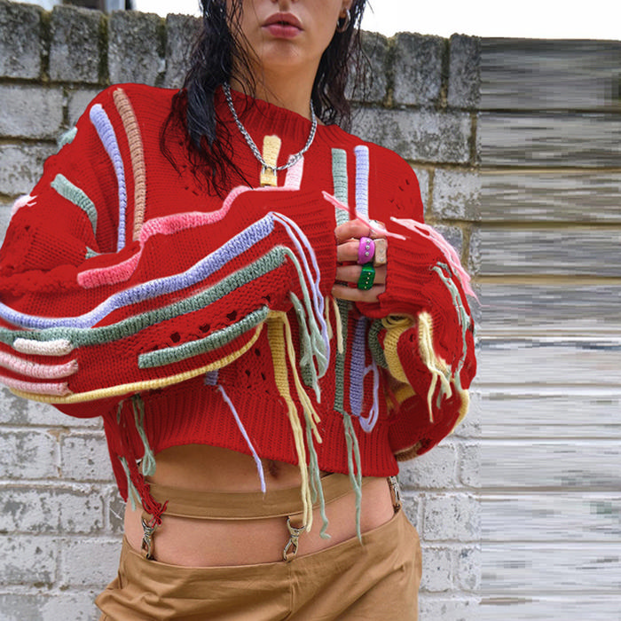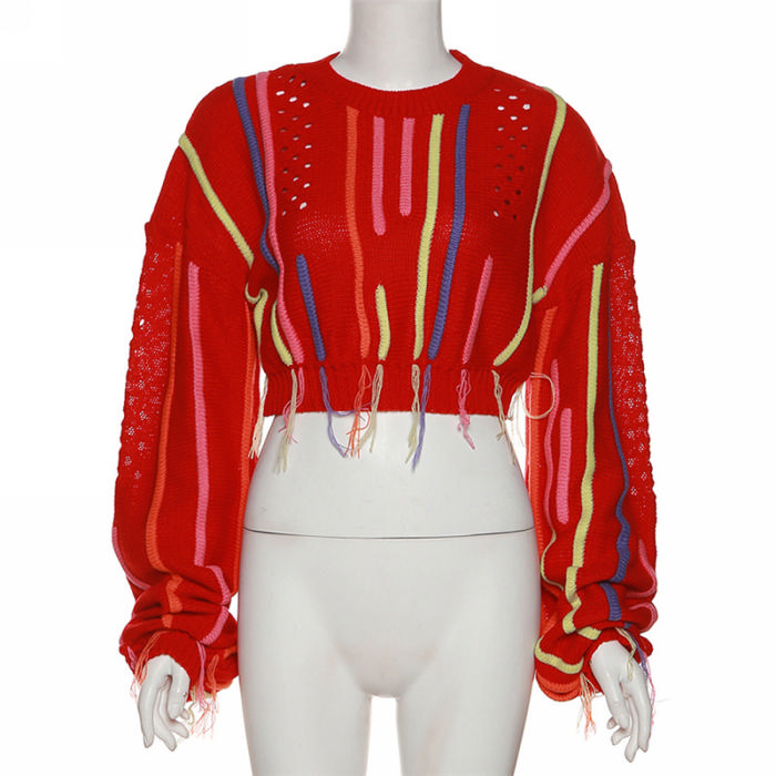 (Red)2022 Styles Women Fashion Spring&Winter TikTok&Instagram Styles Round Neck Sweater TopsSKU: #OM0317-3