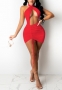 (Red)2022 Styles Women Fashion Summer TikTok&Instagram Styles Bandage Halter Solid Color Mini DressSKU: #XF14899-2