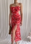 (Red)2022 Styles Women Fashion Summer TikTok&Instagram Styles Floral Strap High Split Maxi DressSKU: #CF22763-2