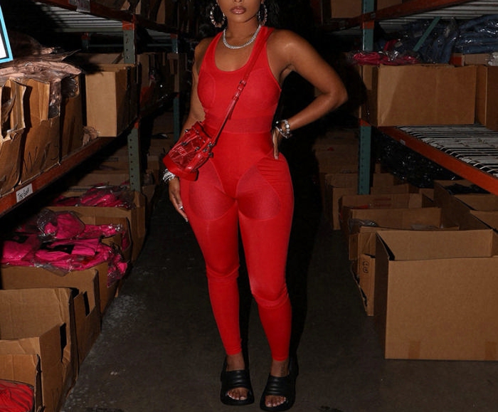 (Red)2022 Styles Women Fashion Summer TikTok&Instagram Styles Strap Net JumpsuitSKU: #CF47259-5