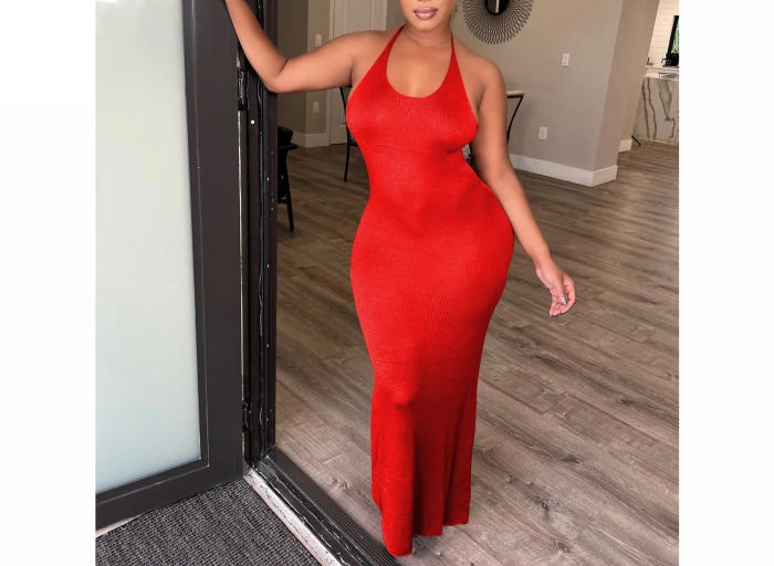 (Red)2022 Styles Women Sexy Spring&Winter TikTok&Instagram Styles Backless Strap Maxi DressSKU: #CF79004-5