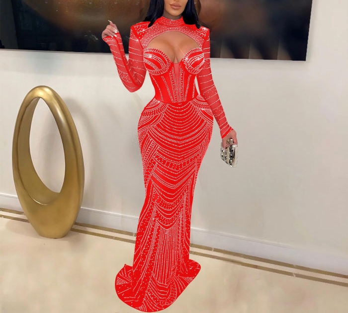 (Red)2022 Styles Women Sexy Spring&Winter TikTok&Instagram Styles Sequins Long Sleeve Maxi DressSKU: #XF27281-2
