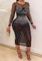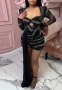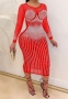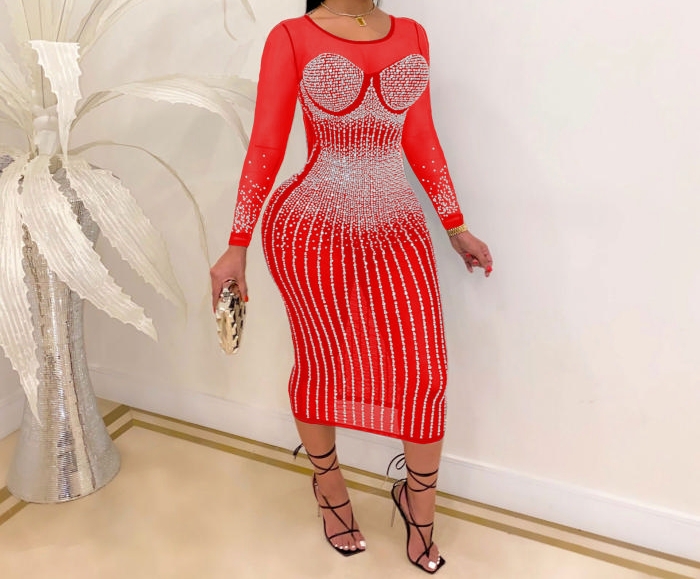 (Red)2022 Styles Women Sexy Spring&Winter TikTok&Instagram Styles Sequins Mesh Long Sleeve Midi DressSKU: #XF27290-4