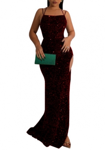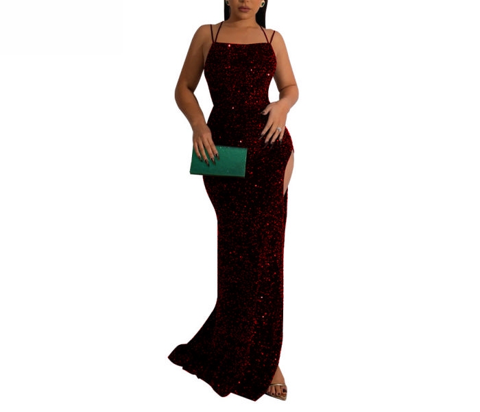 (Red)2022 Styles Women Sexy Spring&Winter TikTok&Instagram Styles Strap Sequin Maxi DressSKU: #CF82010-1