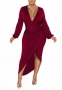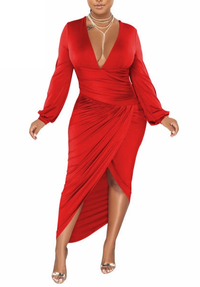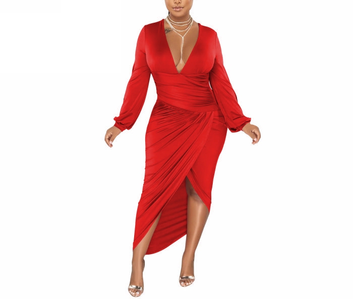 (Red)2022 Styles Women Sexy Spring&Winter TikTok&Instagram Styles V Neck Long Sleeve Irregular Maxi DressSKU: #CF79021-5