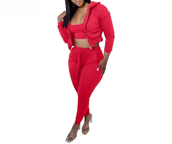 (Red)2023 Styles Women Sexy&Fashion Autumn/Winter TikTok&Instagram Styles Hoodie Three Piece SuitSKU: #OEM6002-7