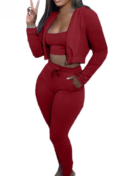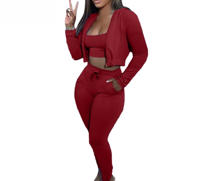 (Red)2023 Styles Women Sexy&Fashion Autumn/Winter TikTok&Instagram Styles Hoodie Three Piece SuitSKU: #OEM6002-6