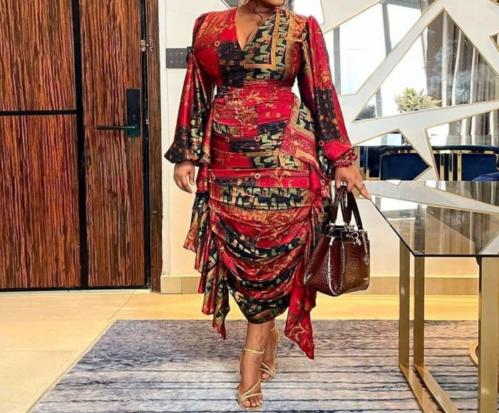 (Red)2023 Styles Women Sexy&Fashion Autumn/Winter TikTok&Instagram Styles Print Loose Maxi DressSKU: #XF27434-3