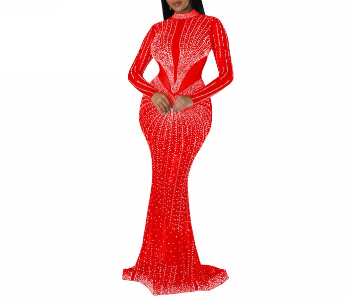 (Red)2023 Styles Women Sexy&Fashion Autumn/Winter TikTok&Instagram Styles Sequins Long Sleeve Maxi DressSKU: #XF73042-3