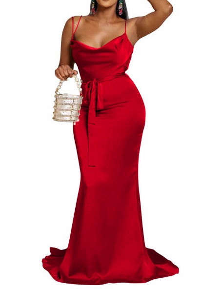 (Red)2023 Styles Women Sexy&Fashion Autumn/Winter TikTok&Instagram Styles Silk Backless Maxi DressSKU: #XF73003-2