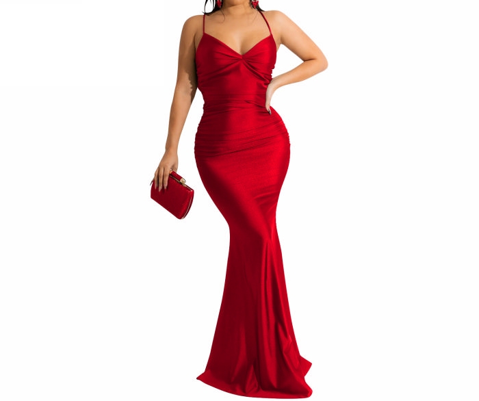 (Red)2023 Styles Women Sexy&Fashion Autumn/Winter TikTok&Instagram Styles Silk Strap Maxi DressSKU: #XF73032-3