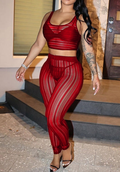 (Red)2023 Styles Women Sexy&Fashion Spring&Summer TikTok&Instagram Styles Mesh Two Piece SuitSKU: #CF47454-2