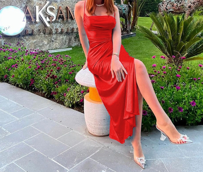 (Red)2023 Styles Women Sexy&Fashion Spring&Summer TikTok&Instagram Styles Silk Maxi DressSKU: #CF88106-2