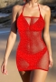 (Red)2024 Styles Women Embellished Sequin Jumpsuit with Lace Top: A Provocative Lingerie with Sheer Mesh DetailsSKU: #CF78102-4