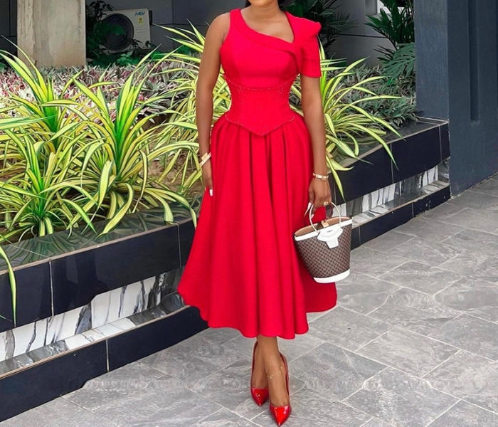 (Red)2024 Styles Women Sexy&Fashion Sprint/Summer TikTok&Instagram Styles Bohemian Single Shoulder Hem Midi DressSKU: #CF91008-3