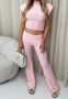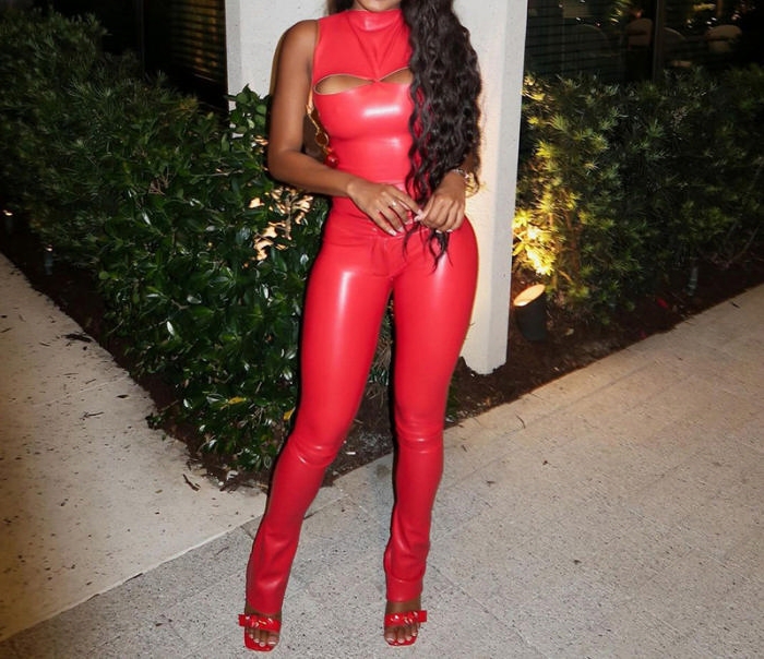(Red)2024 Styles Women Summer Sleeveless Hollow-Out PU Top with High-Waist Hip-Wrap Straight Casual PantsSKU: #CF77819-2