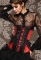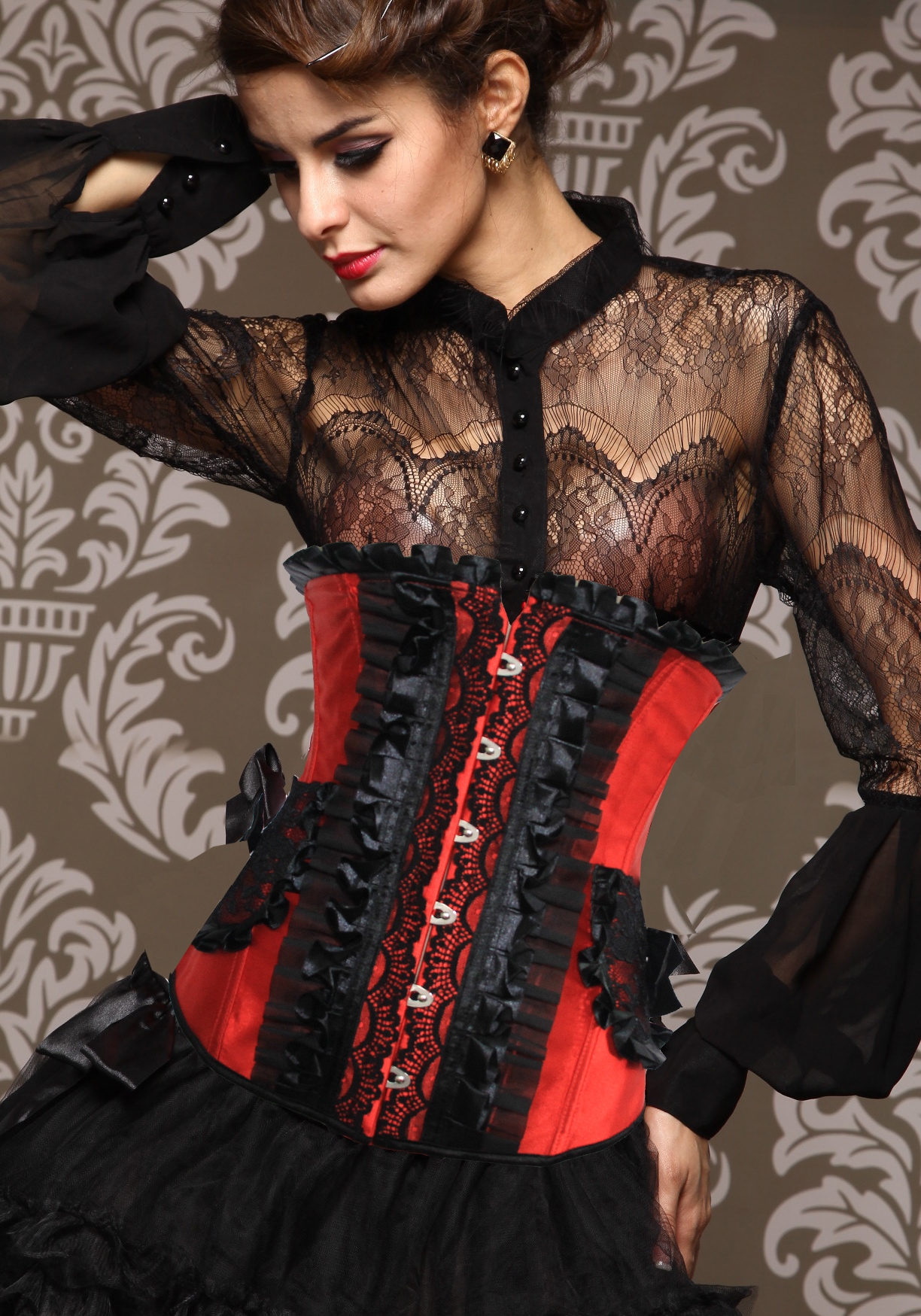 Red Black Ruffle Vertical Stripes Front Satin OverBust Steel Boned CORSETSKU: #QX11005-2