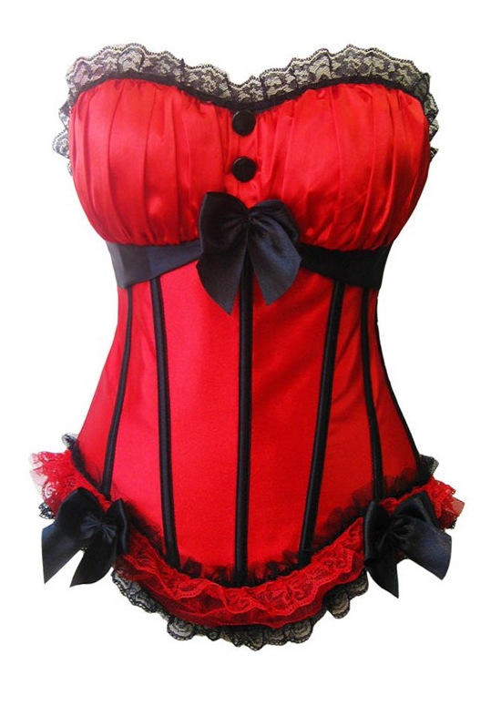 Red Bows Lace Up Vertical Stripes Satin OverBust CORSETSKU: #QX1057-4