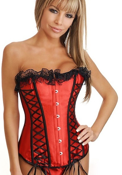 Red Lace Up Front Bandage Satin OverBust Steel Boned CORSETSKU: #QX10059-1
