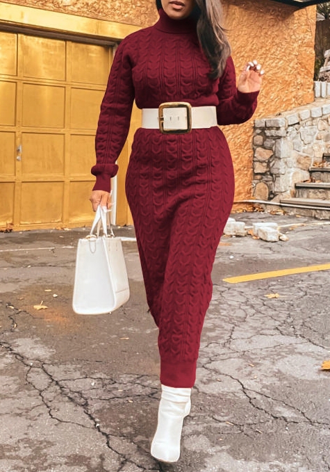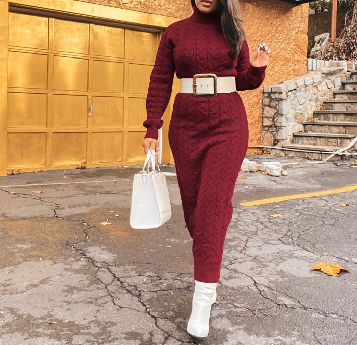 (Red)(Not Waite Tie)2022 Styles Women Sexy Spring&Winter TikTok&Instagram Styles Sweater Maxi DressSKU: #XF85051-2