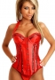 Red Ruffle Print Floral Front Satin OverBust CORSETSKU: #QX1014-0