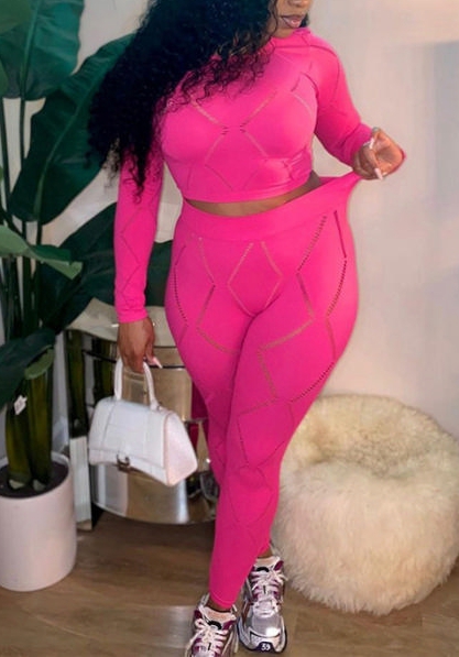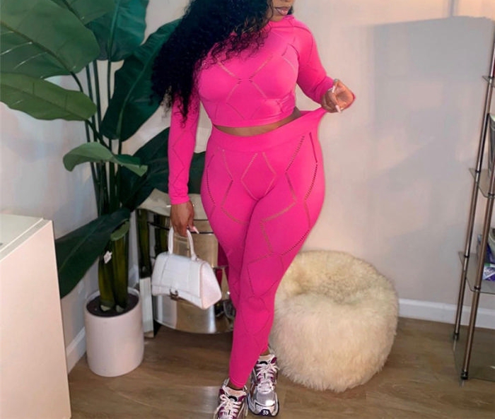 (Rose)2022 Styles Women Fashion Spring&Winter TikTok&Instagram Styles Lace Hollow Two Piece SuitSKU: #CF77125-2