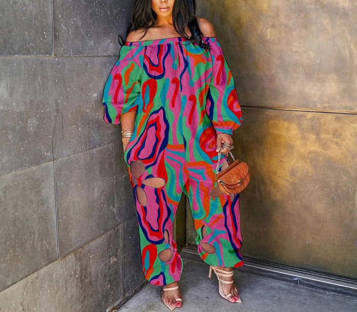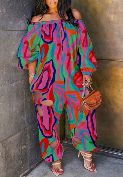 (Rose)2022 Styles Women Fashion Summer TikTok&Instagram Styles Cut Out Print Loose JumpsuitSKU: #OEM5740-3