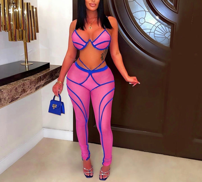 (Rose)2022 Styles Women Fashion Summer TikTok&Instagram Styles Mesh Tie Two Piece SuitSKU: #CF49880-2
