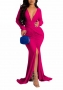 (Rose)2022 Styles Women Sexy Spring&Winter TikTok&Instagram Styles Cross V Neck Long Sleeve Maxi DressSKU: #CF79020-6