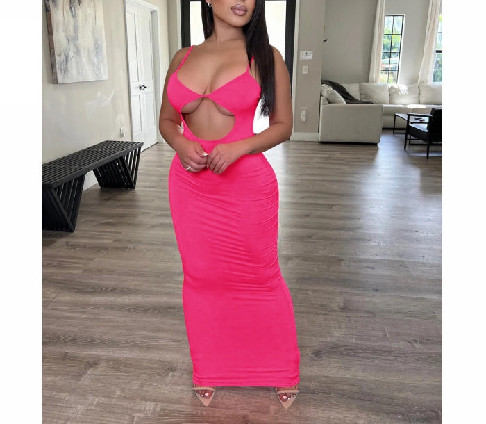(Rose)2022 Styles Women Sexy Spring&Winter TikTok&Instagram Styles Cut Out Strap Maxi DressSKU: #CF79005-6
