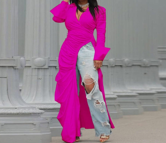 (Rose)2022 Styles Women Sexy Spring&Winter TikTok&Instagram Styles Long Sleeve Irregular Maxi DressSKU: #XF27299-7