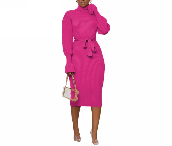 (Rose)2022 Styles Women Sexy Spring&Winter TikTok&Instagram Styles OL Long Sleeve Midi Dress with Waist TieSKU: #XF85052-3