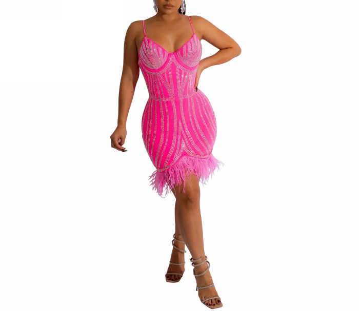 (Rose)2022 Styles Women Sexy Spring&Winter TikTok&Instagram Styles Sequin Tassel Mini DressSKU: #CF79002-4