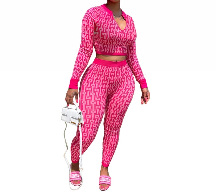 (Rose)2023 Styles Women Sexy&Fashion Autumn/Winter TikTok&Instagram Styles Print Two Piece SuitSKU: #TP118-2