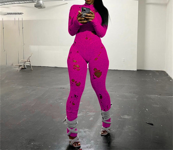 (Rose)2023 Styles Women Sexy&Fashion Autumn/Winter TikTok&Instagram Styles Sweater Ripped JumpsuitSKU: #CF77653-5
