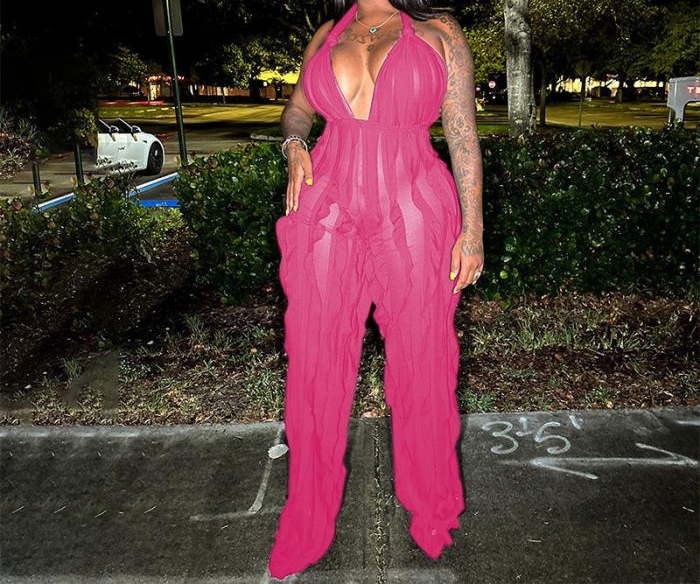 (Rose)2023 Styles Women Sexy&Fashion Spring&Summer TikTok&Instagram Styles Halter Backless JumpsuitSKU: #CF83195-3