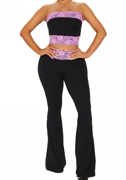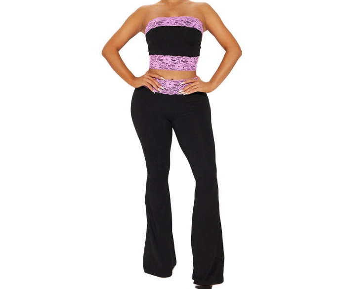 (Rose)2024 Styles Women Summer Fashion Spliced Off-Shoulder Bustier Top and Casual Pants Two Piece SetSKU: #CF47926-3