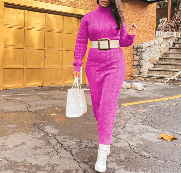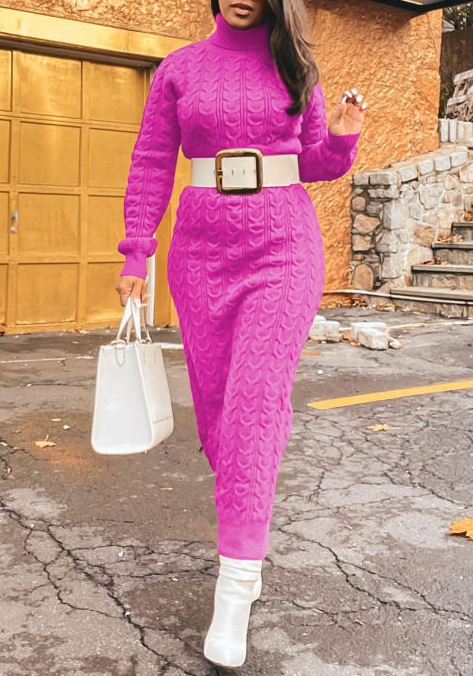 (Rose)(Not Waite Tie)2022 Styles Women Sexy Spring&Winter TikTok&Instagram Styles Sweater Maxi DressSKU: #XF85051-3