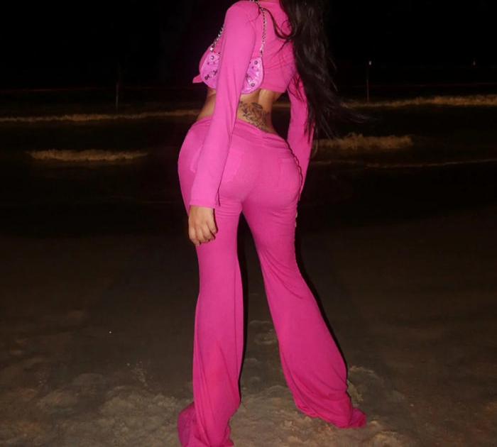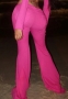 (Rose,Only Bottom)2024 Styles Women Stripe Stretch Waist Pocket Casual Flared PantsSKU: #CF42050-5