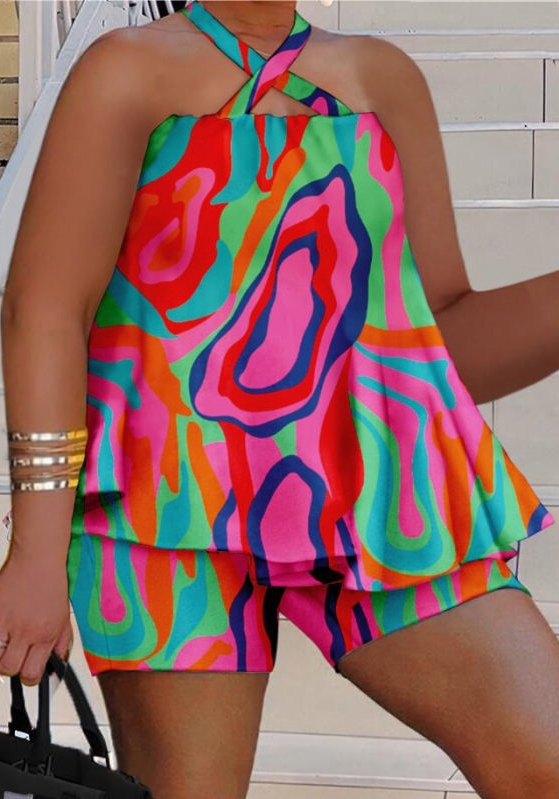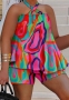 (Rose)(Plus Size)2023 Styles Women Sexy&Fashion Spring&Summer TikTok&Instagram Styles Print Loose Short Two Piece SuitSKU: #XF27346-7