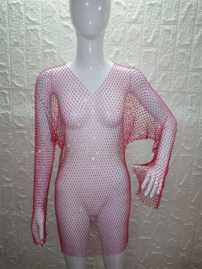 (Rose V Neck)2023 Styles Women Sexy&Fashion Autumn/Winter TikTok&Instagram Styles Sequins V Neck Mini DressSKU: #CF90003-9
