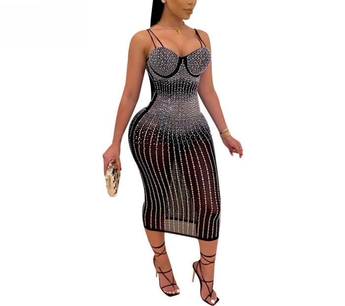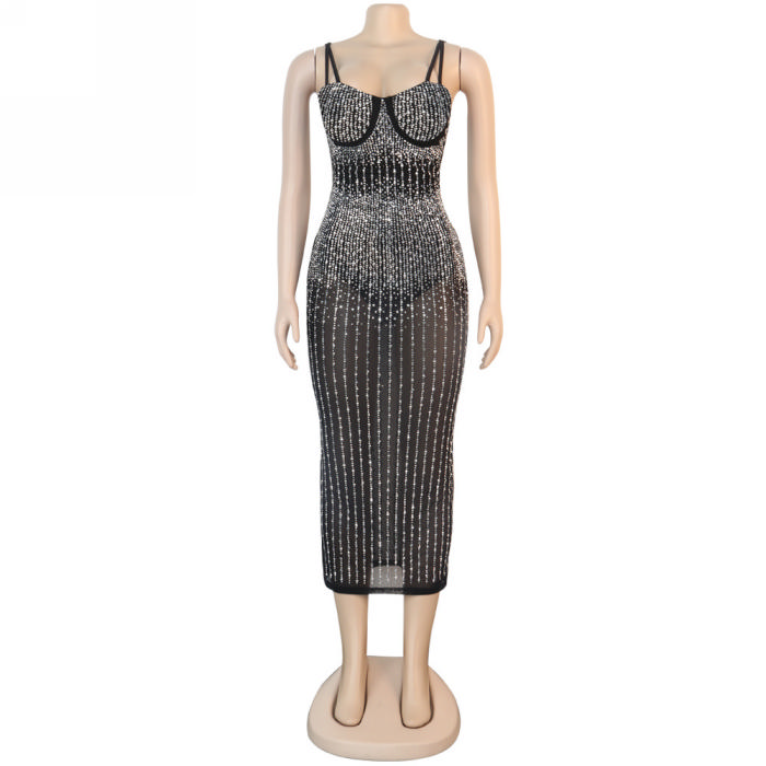 (S-5XL)(Real Image)2022 Styles Women Sexy INS Styles Strap Sequin Midi DressSKU: #XF27200-3