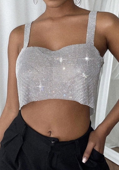 (Silver)2023 Styles Women Sexy&Fashion Autumn/Winter TikTok&Instagram Styles Sequins Strap Tank TopsSKU: #CF90015-5