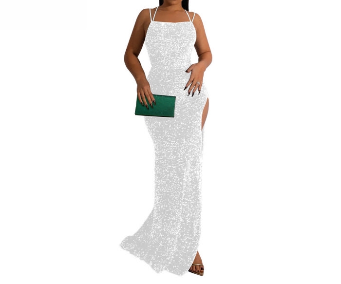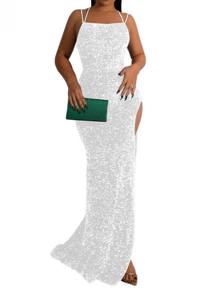 (Sliver)2022 Styles Women Sexy Spring&Winter TikTok&Instagram Styles Strap Sequin Maxi DressSKU: #CF82010-3