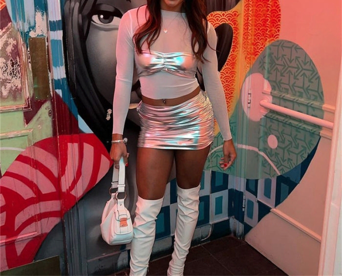 (Sliver)2023 Styles Women Sexy&Fashion Spring&Summer TikTok&Instagram Styles Mesh Long Sleeve TopsSKU: #CF77160-4