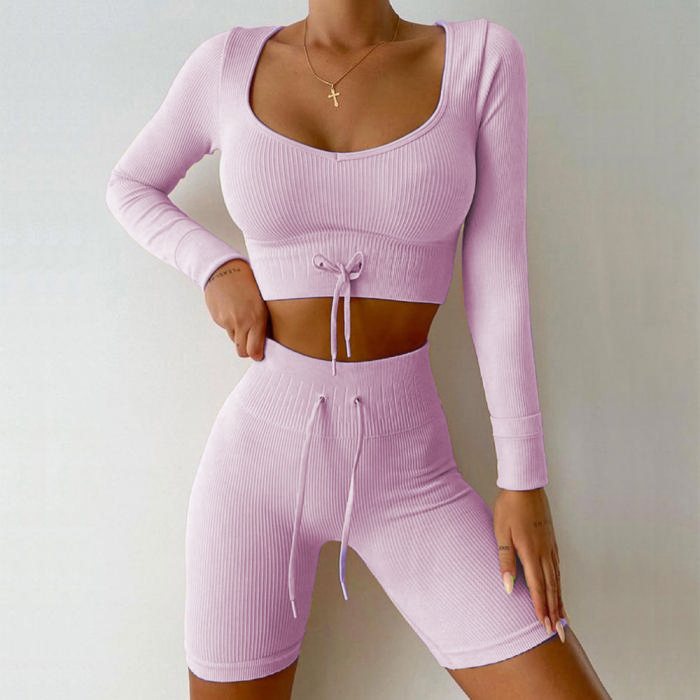 (Top Quality)2021 Styles Women Fashion INS Styles Fashion Autumn Summer Yoga Tracksuit SuitSKU: #CF52042-3