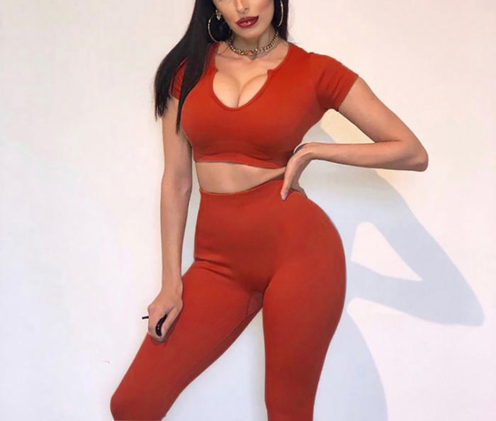 (Top Quality)2021 Styles Women Fashion INS Styles Fashion Autumn Summer Yoga Tracksuit SuitSKU: #CF52043-7