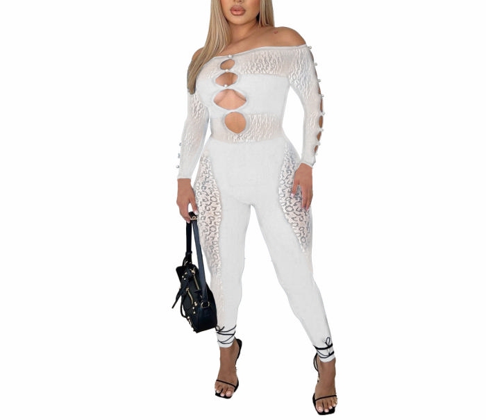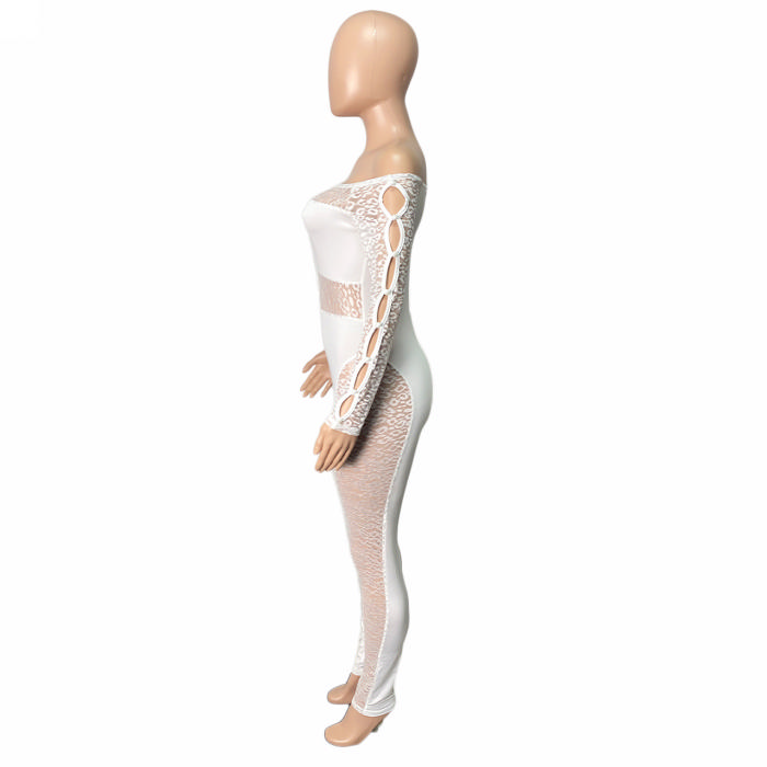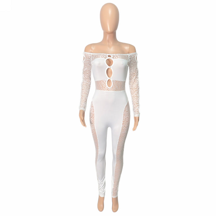 (White)2022 Styles Women Fashion Spring&Winter TikTok&Instagram Styles Lace Cut Out JumpsuitSKU: #XF82084-1