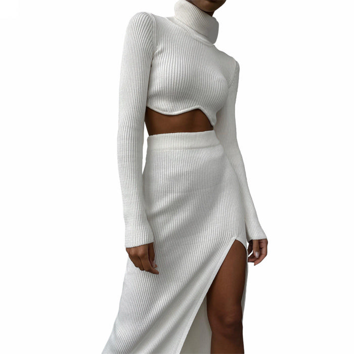 (White)2022 Styles Women Fashion Spring&Winter TikTok&Instagram Styles Long Sleeve Two Piece Maxi DressSKU: #XF82074-2