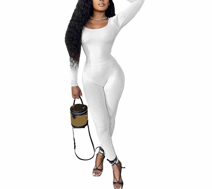 (White)2022 Styles Women Fashion Spring&Winter TikTok&Instagram Styles Solid Color Long Sleeve JumpsuitSKU: #XF82082-1